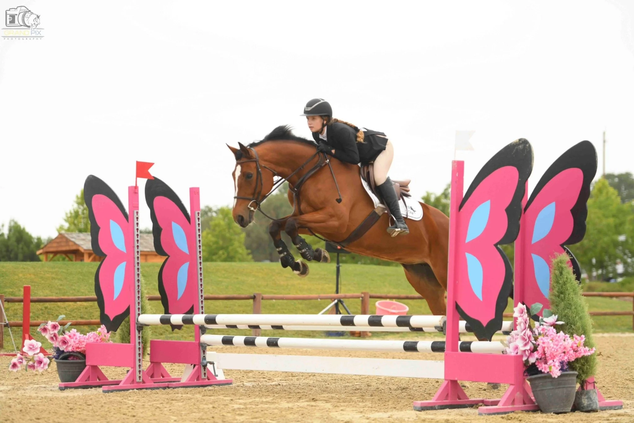 Cider Horse Farm’s Merlin, Tom Schreck up, Reserve Champion Highpoint at Osierlea, August 2024.